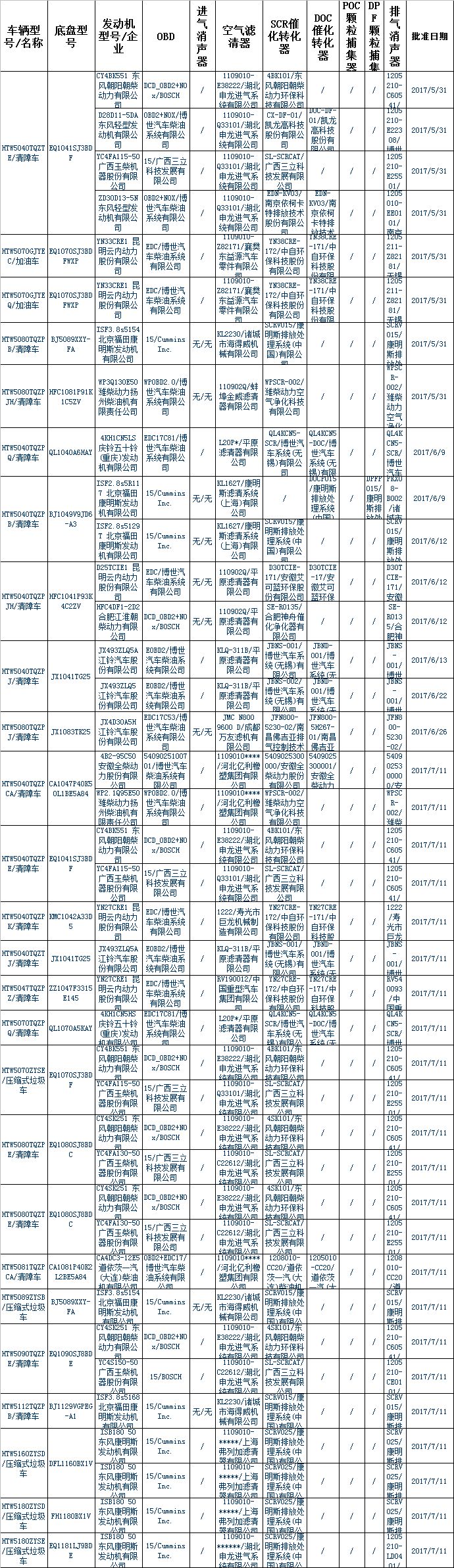 | YC4FA115-50 廣西玉柴機器股份有限公司 | 15/廣西三立科技發(fā)展有限公司 | / | 1109010-Q33101/湖北申龍進氣系統(tǒng)有限公司 | SL-SCRCAT/廣西三立科技發(fā)展有限公司 | / | / | / | 1205210-C60541/東風(fēng)朝陽朝柴動力環(huán)?萍夹g(shù)有限公司 | 2017/7/11 | ||
